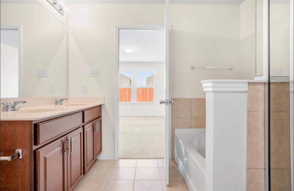 This like-new construction home is ready for you!! Located in Travis Ranch Community, you will have to look no further. As you enter, you will be greeted with ceramic tile flooring throughout the living, kitchen, and dining. Open concept, natural lighting, and clean look. The kitchen is enormous with an island, and spacious dining room. The secondary bedrooms are quaint in size. The primary suite is massive, has an ensuite master bathroom that includes double vanity, garden tub, and separate shower. It also includes a big walk in closet. The backyard has a concrete patio, large to throw a party. This home will not last! Close to entertainments, shopping centers, and dining. Come take a look today!