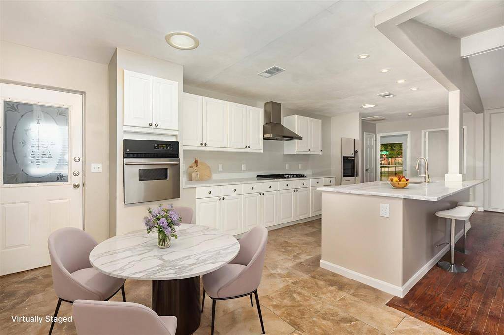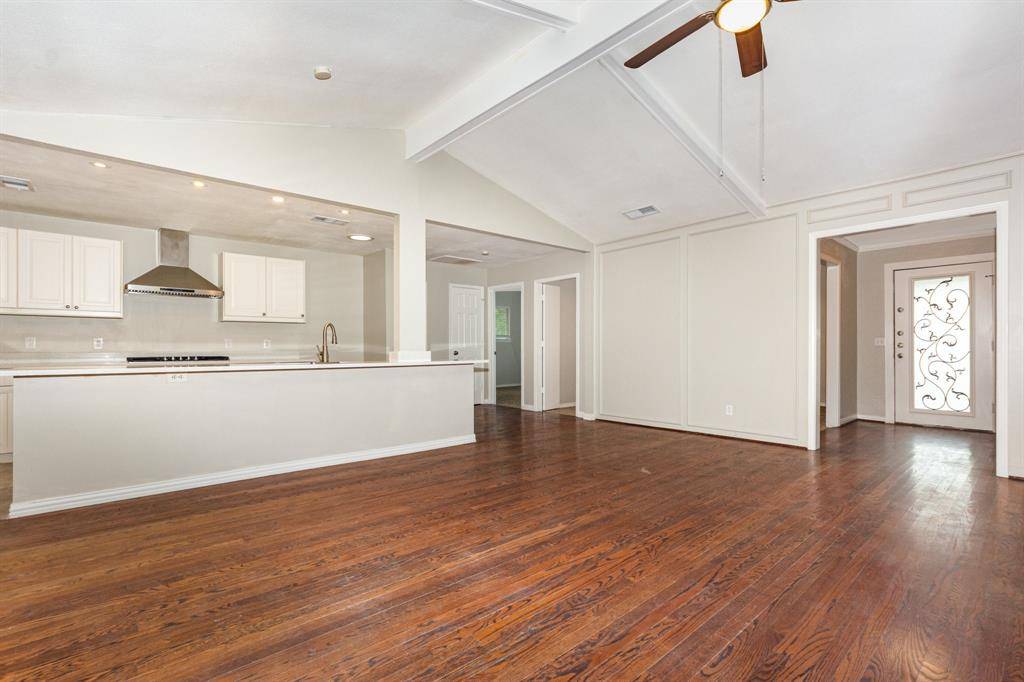 HVAC replaced September 2025! Beautiful updated open concept home on corner lot waiting for you to call home! The fully updated Kitchen overlooks Family room and features white cabinets, designer tile, stainless steel dishwasher, and gas cooktop. Spacious Family room features vaulted ceiling with wood beams, cozy fireplace & beautiful hardwood floors. The spacious Master includes his & hers vanities, two closets & built-in desk area. Upgrades include: renovated bathroom, ceiling fans in all rooms, built-ins in office, decorative glass & iron door. Great backyard with covered patio. All this in a convenient Plano location close to highways, retail & dining