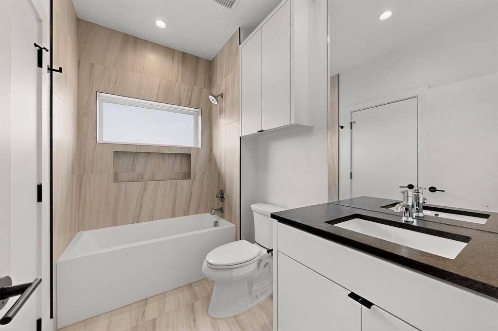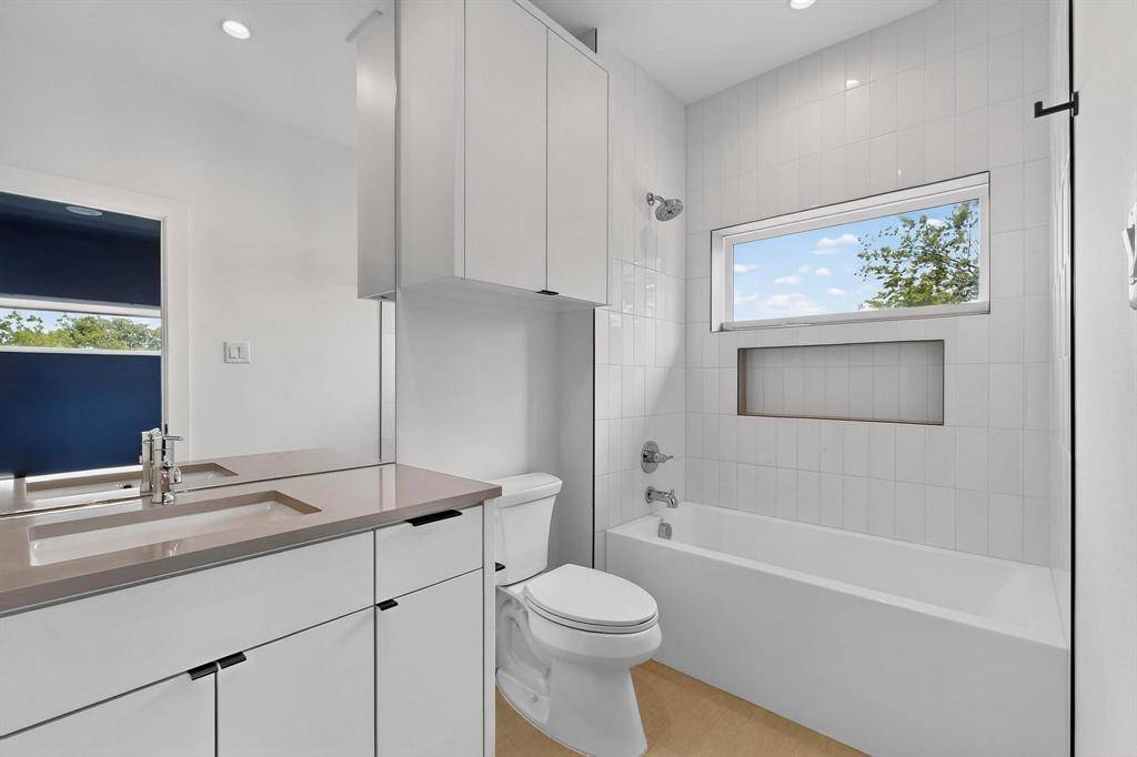 Gorgeous Modern Contemporary home in sought after MIdway Hollow built by The Avant Group. This 5 bedroom 5 Bath home has an inviting curb appeal with a modern flair throughout. Downstairs, the home features an open design with combined kitchen-dining-living areas, a large primary bedroom suite and an office or guest bedroom. The kitchen is nicely appointed with Bertazzoni gas range-oven and Dishwasher, wine cooler, large butler's pantry, and connected mud room with ample storage. The primary bedroom suite offers a spa-like retreat with a tub, large shower, and huge closet that opens to a laundry room. Upstairs offers 3 bedrooms with bathrooms en suite- with one room wired for a home theater- and a second living area with an outdoor balcony. Other features include a smart home wired closet, Novo water conditioner, spray on foam insulation, floored attic storage, and an electric vehicle charging outlet in the garage. Light and bright, elegant, and an excellent location in one of Dallas' most sought after neighborhoods.