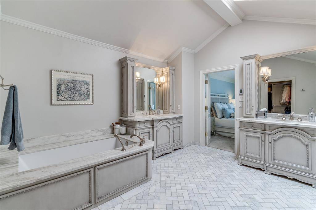 Double lot in the fairway of University Park between Preston and Hillcrest. This superb property features a large turf back yard, heated pool and spa, a covered outdoor living area with fireplace and a street entry gated motor court accessing an 840 sqft 3 car garage. The updated home has 6 bedrooms, 4 full and 2 half baths and 5 versatile living areas. An updated kitchen is at the center of the main level, equipped with recent appliances including an ice maker, double ovens and warming drawer. Two pantries and quartz countertops are other highlights. All bedrooms are upstairs including the primary with a large luxury bath, 2 walk in closets and plenty of space for a living area. Storage abounds with generous closets and built-ins throughout the house. The ultra-rare attached 3 car garage is accessed off of the mud room and an expansive gated motor court is the perfect hard surface extension of the backyard. The home is equipped with a Geothermal system and a generator. A truly rare find in an exceptional Park Cities location.