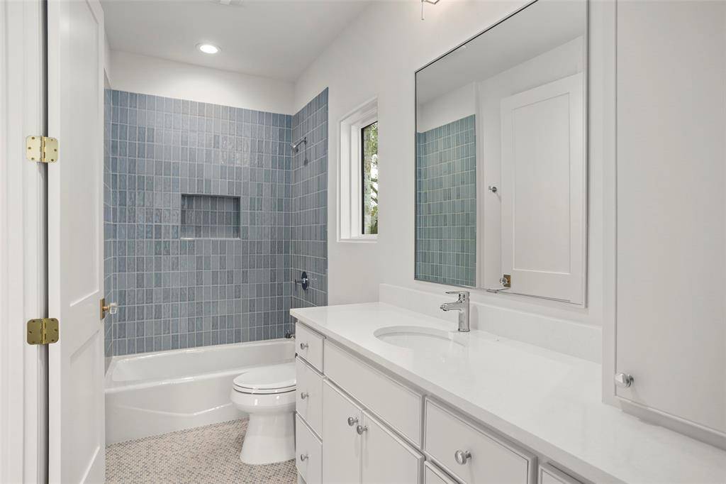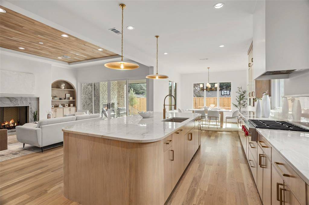 Located on one of the BEST blocks in Midway Hollow. This meticulously designed 5-bedroom, 5.1-bath residence was thoughtfully created by renowned builder Olerio Homes. This custom home exudes a soft contemporary feel, featuring solid oak wood flooring, smooth wall finishes, designer lighting and custom white oak cabinetry throughout. Entertain effortlessly in the expansive kitchen, living, and dining areas. The chef's kitchen impresses with high end appliances, and a walk-in pantry for seamless organization. The primary suite offers a serene retreat with luxurious details, a free standing tub and a custom closet. Upstairs, an oversized game room with a built-in bar and four additional en suite bedrooms. Step outside to spacious backyard complete with a covered patio with motorized shades and a gas fireplace. This one was crafted for those who appreciate the finest in modern living.