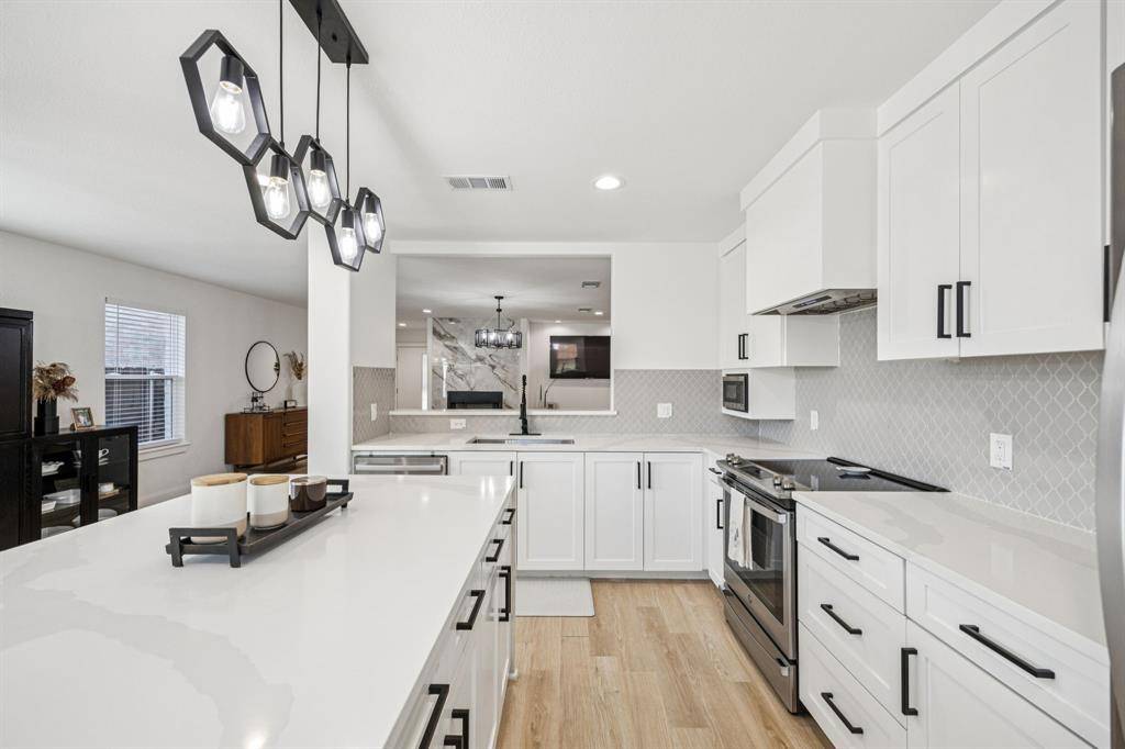 Welcome to your dream home perfectly situated near The Star, Downtown Frisco & the future Universal Studios. This beautifully maintained single-story home offers 4 bedrooms, 2 bathrooms, and an open, welcoming layout that feels instantly comfortable whether you're hosting friends or enjoying a quiet night in. Thoughtfully renovated with designer finishes, this home truly feels like new while still offering a sense of warmth and coziness. The stunning kitchen features all new stainless steel appliances, fresh cabinetry, quartz countertops, and a gorgeous waterfall island perfect for gathering around. Fresh paint, updated lighting, and carefully selected design touches create a bright yet cozy atmosphere throughout. The lovingly maintained primary suite is a peaceful retreat, complete with a beautifully updated ensuite and a large walk-in closet. Outside, the neighborhood adds to the charm with winding walking paths, a giant playground, and the lake just down the road for weekend adventures. Daily life is simplified with unbeatable access to the Dallas North Tollway, Hwy 121, and Hwy 380, plus you're within walking distance to local shopping and conveniences. This home has been cared for with pride and offers the perfect blend of comfort, style, and location—ready to welcome you home.