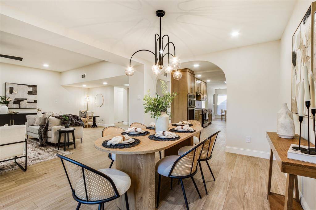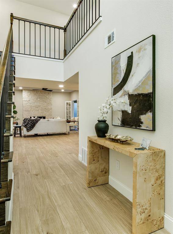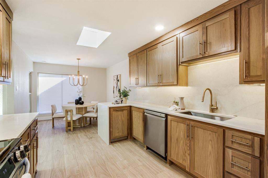 Welcome to The Crown, a HIGHLY SOUGHT-AFTER COMMUNITY located directly across from Canyon Creek Country Club!! This completely renovated, move-in-ready home makes a striking first impression with a stunning iron front door featuring switchable privacy glass, offering both enhanced security and customizable natural light. A spacious entry leads you to an open-concept living with light LVP flooring throughout most of the main floor. The dining area is thoughtfully positioned between the living area and kitchen with access to the patio. The chef's kitchen is designed to impress with updated cabinetry, hardware, under-cabinet lighting, a large undermount sink, double ovens, LG Refrigerator, and a skylight that fills the space with natural light. The breakfast area features a large picture window overlooking the outdoors, while the expansive living room is enhanced by a beautiful stone fireplace, ideal for both entertaining and everyday living. The primary suite is generously sized and offers a fully renovated bathroom with dual sinks, a separate soaking tub and shower, and a large custom walk-in closet. A bright sunroom off the primary bedroom and living room provides a flex space. Additional main-level highlights include a stylish powder bath and a well-appointed laundry room with abundant cabinetry, storage, and extended counter space. A wide wood staircase with iron spindles leads upstairs to secondary bedrooms and a full bathroom. Enjoy low-maintenance living in a community you'll love, conveniently located near II Creeks Plaza, a charming destination with restaurants, shopping, and a small park. ADDITIONAL FEATURES & UPDATES: Roof (2026); Electrical panel; Furnace; Lighting, Hardware, Ceiling Fans, Recessed Lighting, Windows, Sprinkler System, WIC's; Floored Attic Space; Thermasheath.
