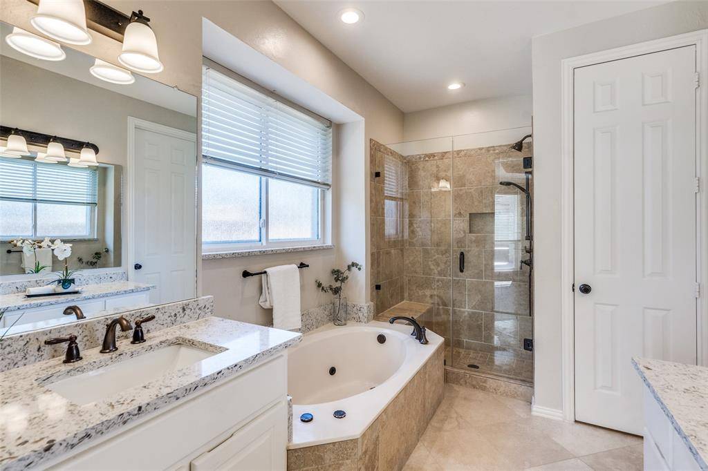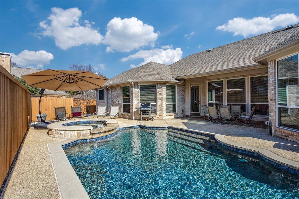 *OPEN HOUSE FEBRUARY 7th & 8th 1 - 3 PM* Beautifully and meticulously maintained one-story home located in the sought-after Hills at Prestonwood community, just minutes from Prestonwood Country Club offering golf, tennis and pickleball courts, pools, fitness center, and dining, with golf and social memberships available. This thoughtfully designed floor plan features 3 bedrooms, 2 bathrooms, a formal dining room, dedicated den or office, breakfast nook, and a spacious living area ideal for both everyday living and entertaining. The kitchen opens to the living room and offers a large breakfast bar, stainless steel appliances, generous counter space, and easy flow to the breakfast nook. Hardwood flooring and tile extend throughout the home, complemented by classic plantation shutters. All windows were replaced adding comfort and efficiency. The light-filled primary suite includes an en-suite bathroom with jetted tub, dual vanities, a makeup table, glass-enclosed shower, and walk-in closet. Secondary bedrooms are well-sized and thoughtfully positioned. Step outside to a private backyard retreat featuring a pool and spa that were fully remodeled in 2023 and upgraded to saltwater, along with a covered patio—perfect for relaxing or hosting guests. A newer AC system, replaced in 2023 with extended warranty adds peace of mind, and gutter guards were added in 2024 to help reduce maintenance. Plus this home is conveniently located near shopping, dining, top-rated schools, and the North Dallas Tollway, this home offers comfort, functionality, and an exceptional Plano location.