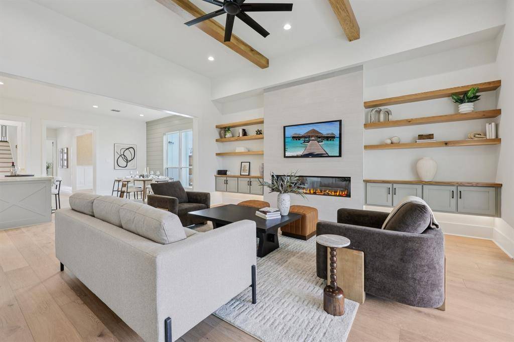 Located in the heart of Lake Highlands, this 4,850 sq ft custom home offers exceptional design, flexibility, and energy efficiency. Featuring 5 bedrooms, 5 full baths, and 1 half bath, the home welcomes you through twin 42 inch divided-light front doors into a custom-lit entry and private study with dedicated bath. The formal dining room showcases wainscoting and designer wallpaper. The expansive gourmet kitchen features double islands, quartzite countertops, custom soft-close cabinetry with functional built ins, and a premium appliance package including a 48 inch built in refrigerator freezer, two dishwashers, six burner gas range with griddle, double ovens, and pot filler. A large walk in pantry offers tailored shelving and a dedicated appliance station. The living room includes an electric fireplace and expansive sliding glass doors for seamless indoor outdoor living. The primary suite features custom lighting, a spa inspired bath with freestanding tub and rain shower, and a custom closet with built ins, safe, and direct utility room access. Upstairs includes a media room pre wired for sound and includes a wet bar, ice maker, and refrigerator; a large game room with flexible bonus space; four additional bedrooms; and three full baths, including a private two room suite with ensuite bath. Outdoor living features a covered patio with beadboard ceiling, ceiling fan, large format tile, and built in gas grill. Pool renderings available. Additional highlights include white oak wide plank floors, ceiling beams, solid core doors, custom trim, epoxy floored garage with storage, full yard irrigation with foundation watering, tankless water heater, dual zoned HVAC, and pre wiring for security and audio. Built to City of Dallas high standards with spray foam insulation, windows, impact resistant shingles, oversized gutters, and french drains to rear alley.