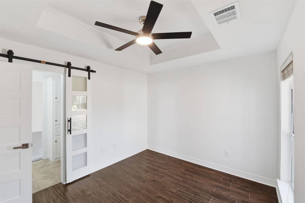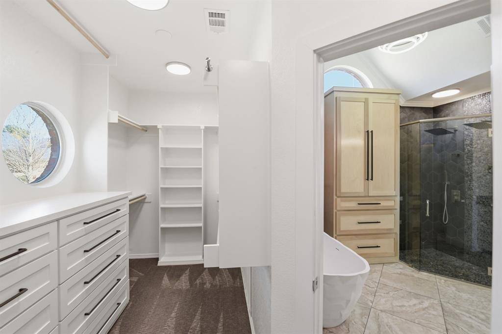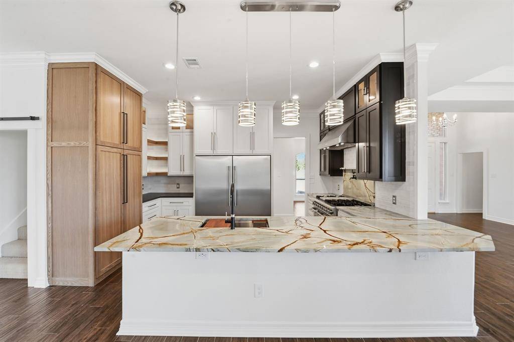 Situated on nearly half an acre in Southridge Lakes, this extensively renovated 4-bedroom home offers over 3,100 square feet with two spacious living areas, two dining areas, and a versatile bonus room designed for flexible living. The kitchen has been completely reimagined with custom cabinetry throughout, quartzite countertops, updated lighting, and a premium gas range with dual ovens. A built-in column refrigerator paired with a matching column freezer creates a true chef's layout with exceptional storage and a seamless, high-end look. All appliances have been replaced, and the cabinetry provides abundant storage with a clean, modern aesthetic while maintaining elevated finishes. The space opens seamlessly to the main living area, creating ideal flow for everyday living and entertaining. The primary suite is generously sized and offers direct walk-out access to the pool. The fully remodeled spa-inspired bathroom features dual shower heads in an oversized walk-in shower, a fireplace positioned above the soaking tub, updated tilework, new countertops, and refined modern finishes throughout. The entire home is served by a tankless water heater, providing continuous hot water and improved efficiency. The primary closet has been upgraded with custom built-ins and drawer systems for optimal organization.