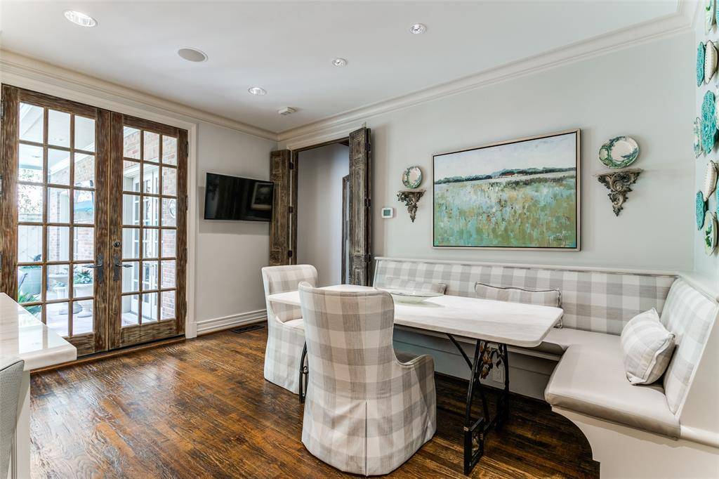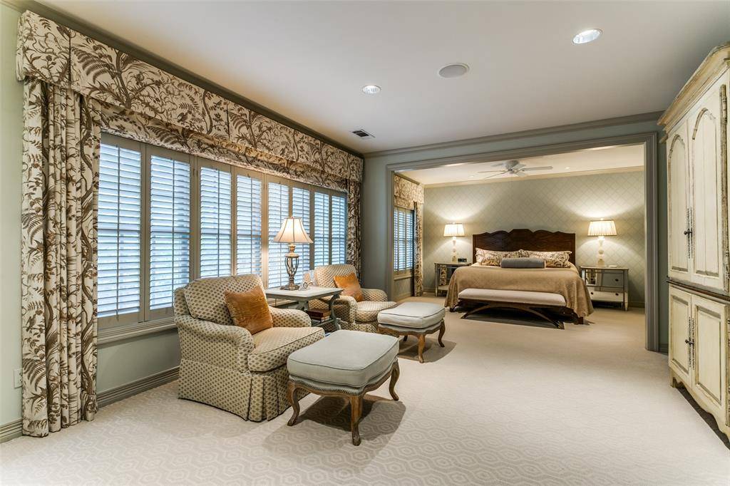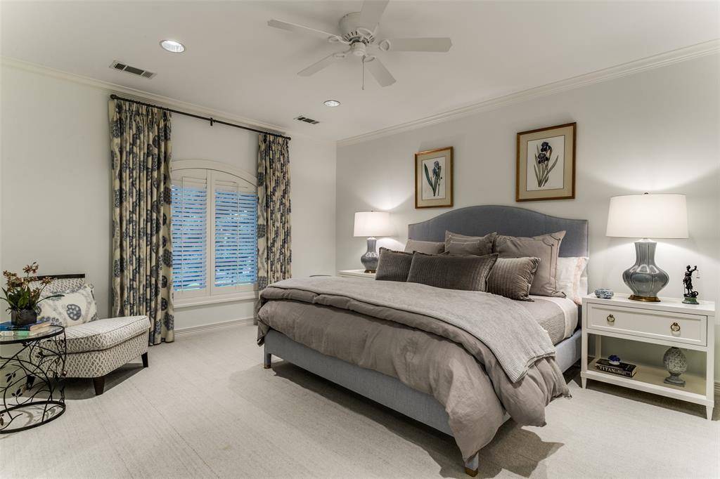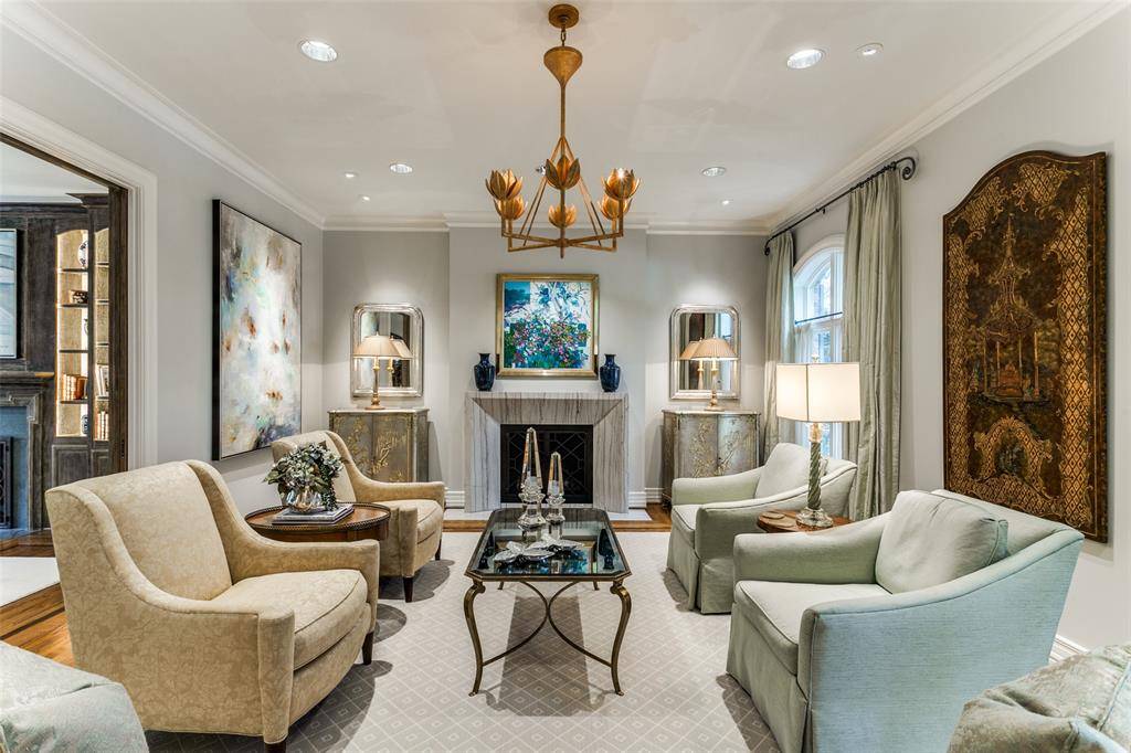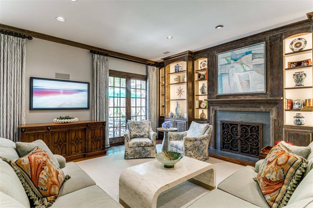 This traditional residence in the heart of Highland Park exudes classic architecture with elegant sophistication. Thoughtfully remodeled by Nickey Oates in 2020, the home offers gracious living areas with functionality for any family. Hardwood floors, beautiful millwork, and designer wallpapers are accents to the generously proportioned spaces. The formal living room with arched windows and a handsome fireplace creates a lavish living area offering an intimate feeling. A spacious family room with attractive lighted shelving and cabinets flank the stone fireplace and features a wet bar that is ideal for large or small gatherings. The French doors offer views to the sparkling pool and allow for an abundance of natural light.The dining room showcases a serene wallpaper and is perfect for dinner parties with a butler's pantry opening to the superb kitchen. A large center island with a stunning countertop, and custom cabinetry are great attributes in this kitchen. The breakfast nook is a comfortable place for informal dining while overlooking the outdoor patio and pool. Nearby is a silver closet and pantry for ample storage. A guest bedroom suite is conveniently located on the first level for privacy. Up the rear staircase is a game room, mother-in-law suite, or guest quarters. A play room is connected creating a joyful entertainment space for children and grandchildren. The second level focuses on a center landing with two ensuite bedrooms and a third bedroom that can be used as an office space. The well-appointed primary suite offers a generous living area, a luxurious spa-like bathroom including double vanities, separate shower, and a soaking tub. It also features a large walk-in closet with built-in cabinetry and a cedar closet. The lush landscaping is immaculate with a sparkling pool and cheerful cabana. A fun bonus for entertaining guests while lounging outside! This warm and welcoming home presents quality and impeccable detail in this sought after neighborhood.
