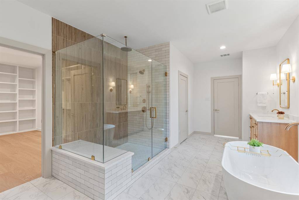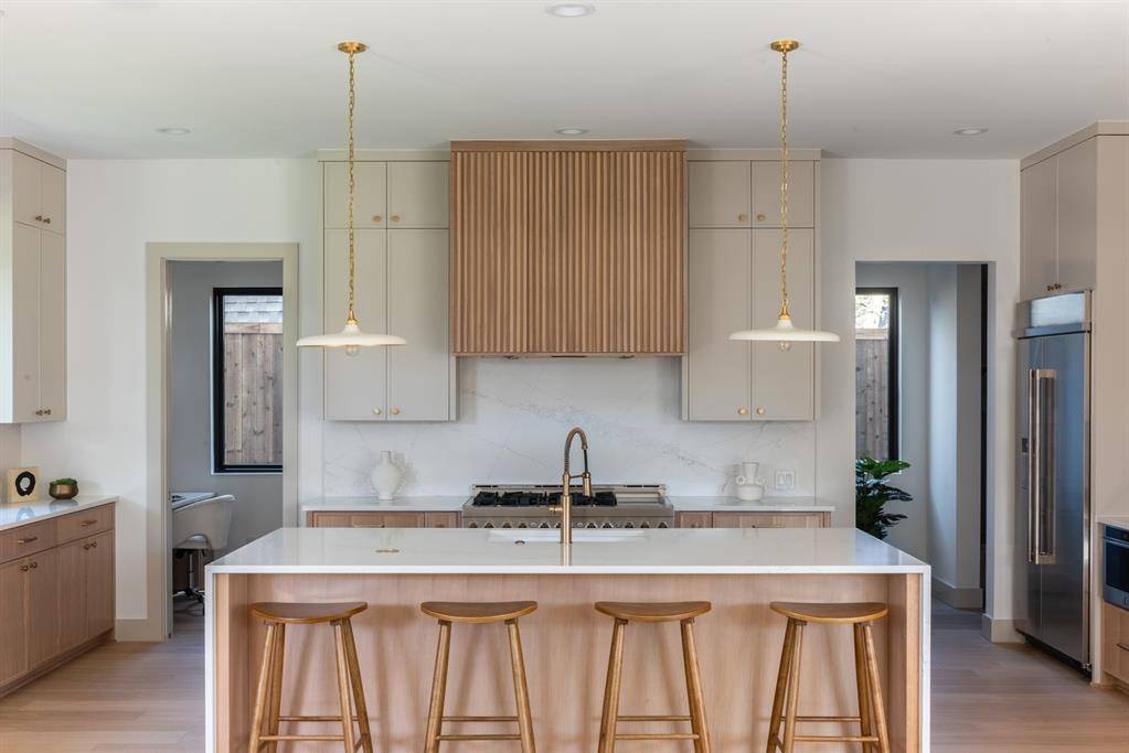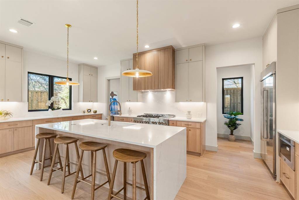 MLS# 21193395 - Built by Homebound - Ready Now! ~ Stunning new construction home in the charming Little Forest Hills neighborhood, designed for comfort and style, with thoughtful details throughout. Upon entry, an abundance of oversized Anderson windows bathes the home in natural light, and you're greeted by a versatile office (or bedroom) and a full bath. The open-concept main level features a spacious living room, dining room, and a pocket office. Enjoy cooking or entertaining in a chef-inspired kitchen, featuring top-of-the-line JennAir appliances, double-stacked, rift-sawn white oak cabinetry, Silestone quartz countertops, and a striking decorator vent hood. Ideal for preparing large meals with an oversized kitchen island, a large hidden pantry, and ample countertop space. Adjacent to the kitchen, the living area opens directly to the covered patio via double Anderson sliding doors, perfect for al fresco dining or evening stargazing. Upstairs, the primary suite with an extended retreat is complemented by two additional bedrooms and bathrooms. Thoughtfully curated finishes throughout include Delta plumbing fixtures, Visual Comfort lighting, and premium tile selections throughout. Designed by prominent firm Elm Residential in a Modern Farmhouse style, this home features board and batten and lap siding, stainless steel roofing accents, as well as oversized single-hung windows and a partial glass front door. Includes 1-2-6 builder warranty and 3 year complimentary home automation.