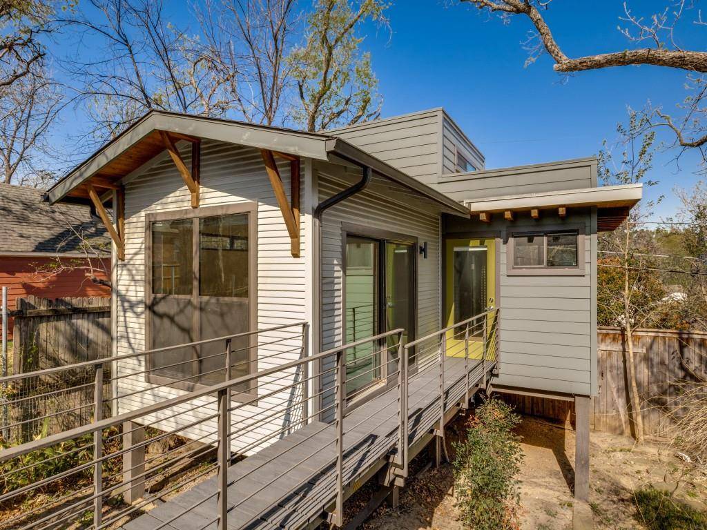 A true standout is the detached 440 sq. ft. guest house, known as “The Tree House,” designed by Brian Gream in 2017. Elevated above the lot and accessed by a charming bridge, this unique space is perfect for rental income, a private office, guest suite, or creative retreat.