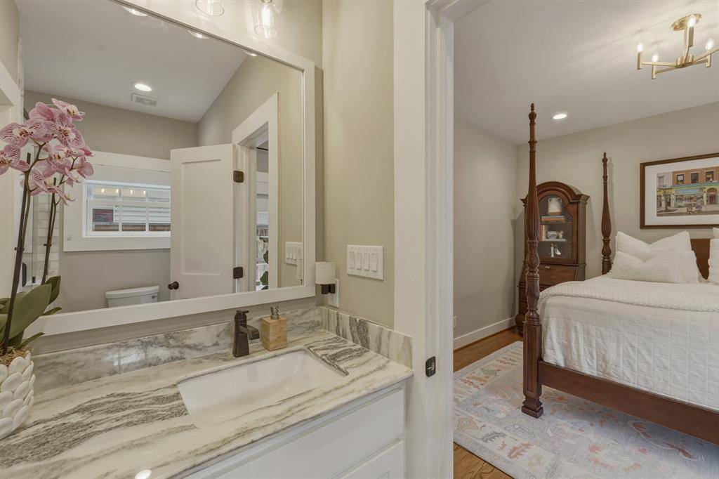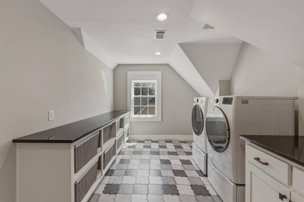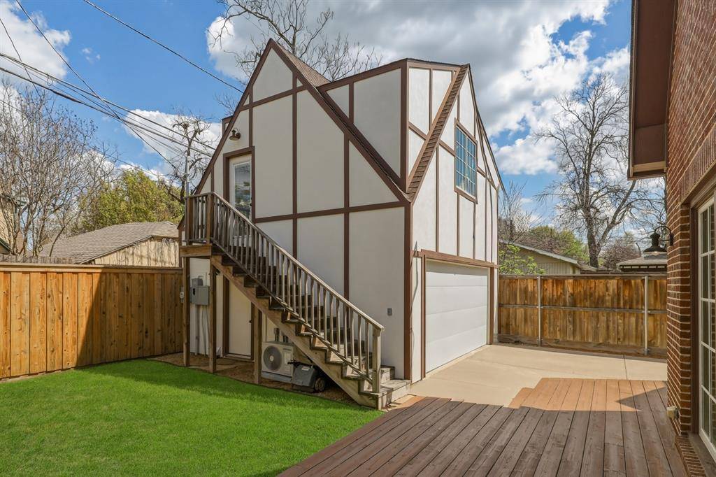 Experience the perfect marriage of historic architectural soul and 2019 built precision at 420 Clermont Avenue. This stunning Tudor home in the heart of East Dallas offers the coveted old world aesthetic, characterized by steeply pitched gables and timeless masonry, seamlessly integrated with smart home conveniences and energy efficient features of newer construction. Step inside to find museum quality finishes, including rich hardwoods that flow throughout the entire floor plan. The interior is a masterclass in transitional design, elevated by exquisite designer touches. Custom designer curtains, offered with the home, add a layer of sophisticated texture and luxury rarely found in a standard listing. Designed for modern living, the home features a to die for mudroom, a massive dedicated drop zone with custom cabinetry that keeps daily life organized and elegant. The second floor reveals a laundry room of epic proportions, offering extensive storage and workspace to support a busy household. The amenities extend to the backyard, where a two car detached garage provides more than just parking and includes guest quarters with access to water and sewer, ideal for a private home office, guest suite, or long term rental opportunity. Ideally positioned with access to highly regarded Lakewood Elementary, the home also offers exceptional walkability to Lindsley Park, the Santa Fe Trail, and White Rock Lake, bringing some of East Dallas' most loved outdoor amenities right to your doorstep.