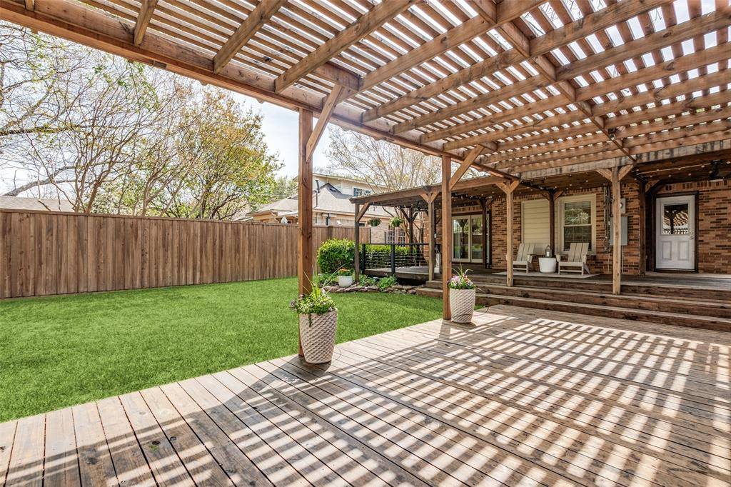 Additional highlights include updated closet organization systems, all new appliances, a 2023 roof, new landscaping with irrigation, and a privacy fence with iron gate.