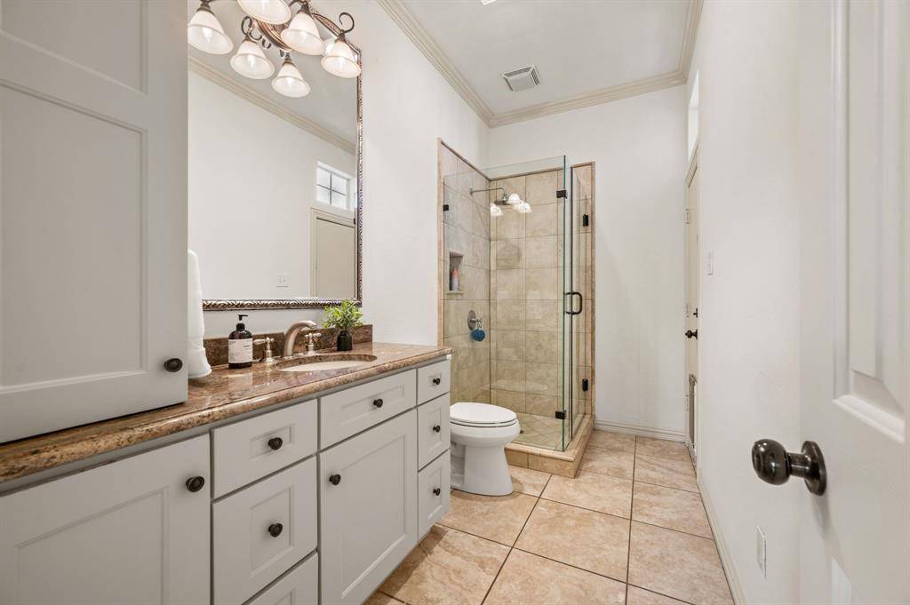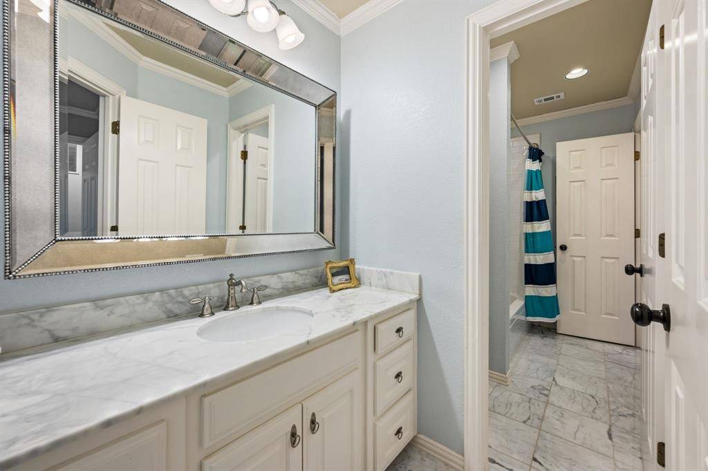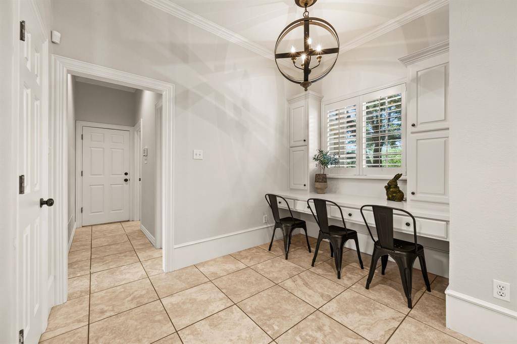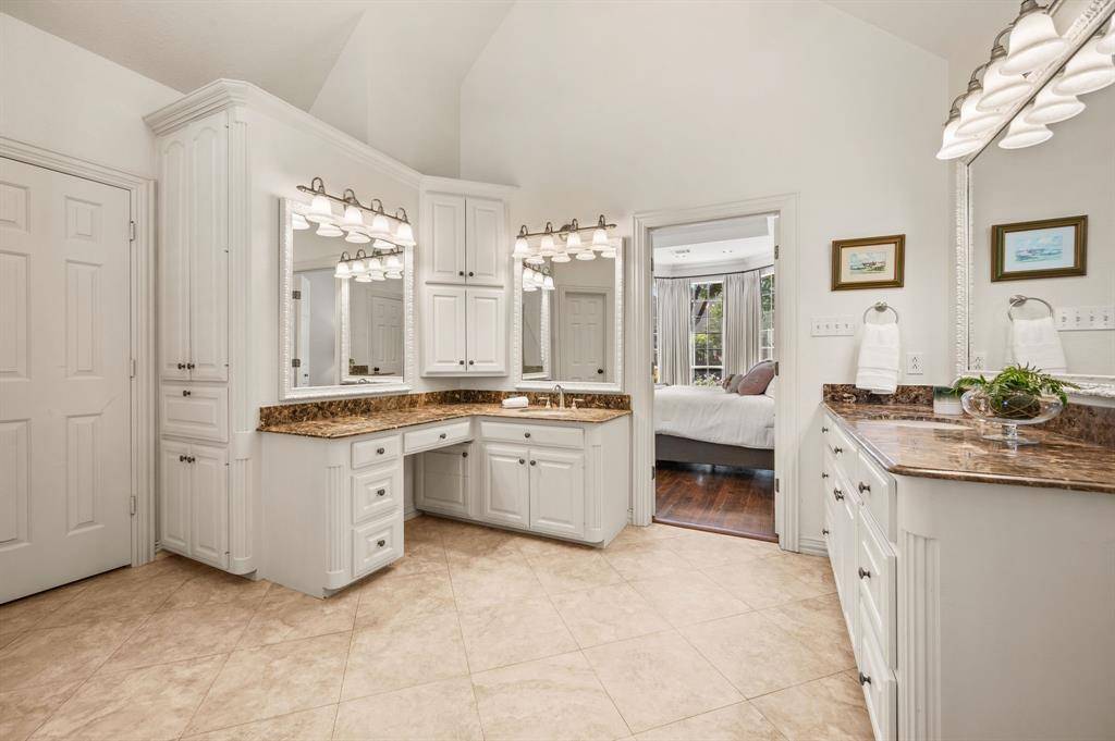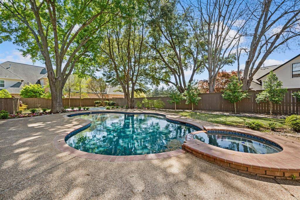 Beautiful custom home in desirable Timarron - central Southlake location! Lovely curb appeal with many mature trees on this half acre lot. The 5 bedroom floor plan offers flexibility with private primary & guest suites on the main level. Upon entry, the high ceilings & elegant, curved iron staircase and quality mill work will impress. The home office features custom cabinetry to the ceiling in a serene shade of blue. The formal living across the foyer boast a gas fireplace and tall windows overlooking the pool and treed backyard! Formal dining area leads to the large kitchen via a butler pantry. The kitchen features tile floors, blt-in refrigerator, dbl ovens, gas cooking, painted cabinets, large center island & walk-in pantry. the island opens onto the family room and the contiguous tile floors render a wide-open feel! The guest bedroom suite is at the rear of the home, while the primary bedroom with wood floors is at the opposite side of the home with exterior door to patio! The large primary bath features split marble vanities, painted cabinets, jet tub & oversized W-I shower & spacious walk-in closet! Upstairs you will find a game room with wood floors, 3 bedrooms with new carpet, and 2 full baths (one is ensuite). Outdoors, you will enjoy the play pool & spa set into this park-like treed setting! There is a covered patio and sport court, too. See list of improvements: Roof 2025, HVAC 2023, all new lux carpet, main level interior wall paint 2026 & more! Timarron n'hood offers 2 community pools, playgrounds, tennis & more!