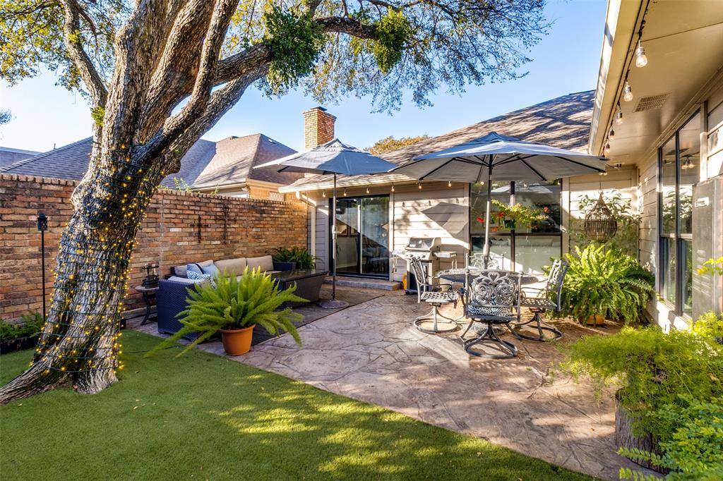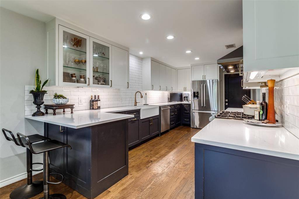 Rarely available, this beautifully renovated single-story home in highly sought-after 12500 Preston offers the perfect blend of modern updates and timeless comfort. Thoughtfully updated in 2022, the home features a fully reimagined kitchen and primary bath, design with both style and functionality in mind. The stunning kitchen showcases granite countertops, custom cabinetry extending to the ceiling, under-cabinet lighting, and soft-close drawers accented with elegant gold hardware. A premium appliance package includes a Bosch refrigerator, dishwasher, and microwave, along with a striking 36-inch Fulton gas range and oven-ideal for both everyday living and entertaining. The primary suite serves as a private retreat, highlighted by a completely remodeled spa-like bathroom featuring a freestanding soaking tub, dual vanities, and a beautifully tiled shower and flooring. Designed for gathering, the living room features a cozy fireplace and a stylish dry bar with custom floating, illuminated shelves. The home offers 3 bedrooms, 2.5 baths, and two spacious living areas, providing flexibility for both relaxation and entertaining. Hardwood floors flow throughout most of the home, including the family room, dining room, kitchen, hallways, and primary bedroom, adding warmth and continuity. Step outside to a hard-to-find backyard oasis complete with artificial turf, a stamped concrete sitting area, a mature trees-creating a low-maintenance yet inviting outdoor space. Additional upgrades include replaced interior wood doors, in-ceiling sound speakers, LED can lighting, and fully landscaped grounds. Residents enjoy access to excellent neighborhood amenities, including a community pool with cabana and tennis courts, enhancing the lifestyle this exceptional home provides.