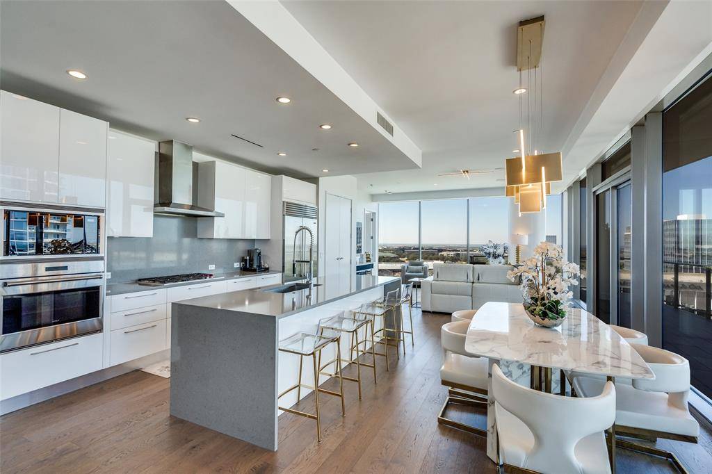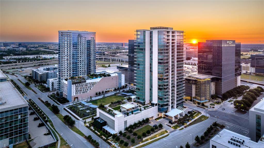 *OPEN HOUSE EVENT ~ March 28th & 29th 1 - 3 PM* Premier North-West corner unit on the 11th floor of Windrose Tower—offering panoramic sunset views, a wrap-around balcony with fireplace and true lock-and-leave luxury in the heart of Legacy West. This exceptional home features 2 bedrooms, 2.1 baths and a versatile den or office with floor-to-ceiling glass that fills the space with natural light and city vistas. The wrap-around terrace with fireplace creates a seamless indoor-outdoor living experience—ideal for entertaining or quiet evenings above the city. Inside wide-plank wood floors, refined architectural details and electronic shades deliver a warm, modern aesthetic throughout. The chef's kitchen is both striking and functional showcasing quartz countertops, an oversized island, Sub-Zero refrigerator, Wolf 5-burner gas cooktop and a dramatic floor-to-ceiling glass wine case—perfect for hosting or everyday luxury living. The primary suite is a serene retreat with a custom-designed walk-in closet, elegant textured accent wall and a spa-inspired marble bath. The secondary bedroom provides flexibility with a built-in Murphy bed and custom closet, ideal for guests or additional living needs. A climate-controlled private storage unit is included, offering added convenience rarely available in high-rise living. Windrose Tower delivers unmatched service and amenities including 24-hour concierge, valet parking 7-days a week and 2 assigned parking spaces in a secure, enclosed garage. Residents enjoy resort-style living with a saltwater pool, private cabanas, state-of-the-art fitness-wellness center, golf simulator, wine lounge, conference rooms, outdoor kitchens, landscaped terraces, pet spa and 2 reservable guest suites. Positioned near the corporate headquarters of Toyota, Liberty Mutual and Chase and minutes from premier shopping, dining and entertainment this residence offers a rare opportunity to own a refined corner unit in one of Plano's most prestigious addresses!