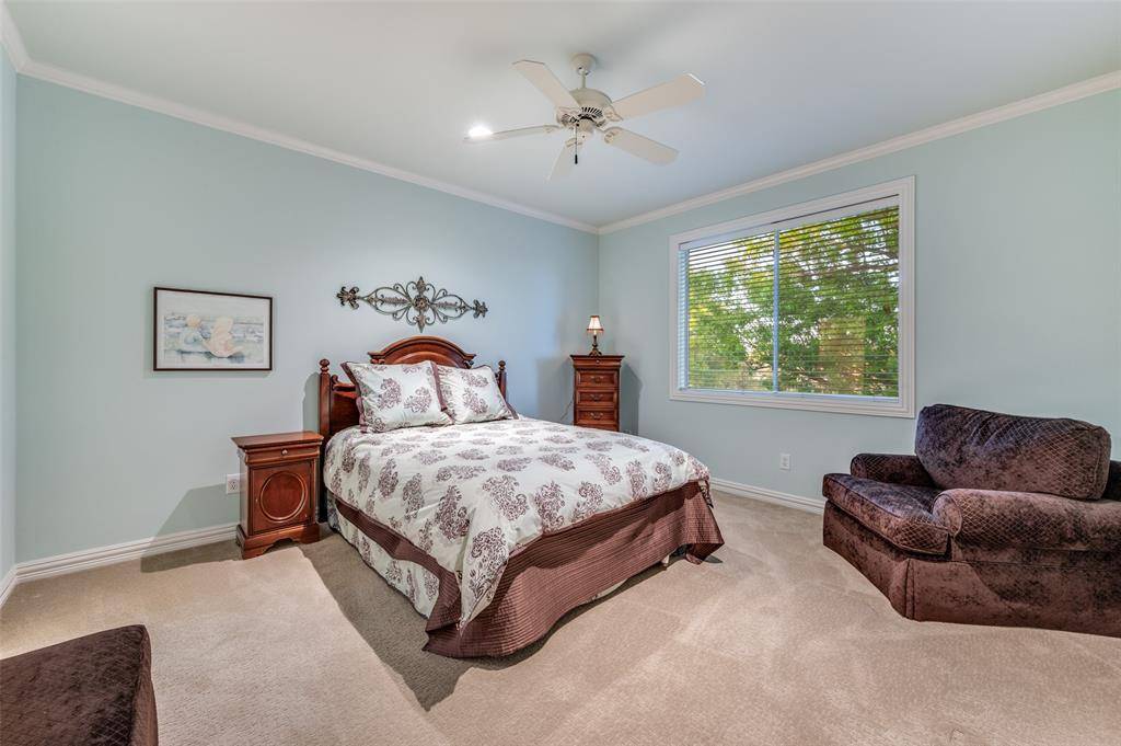 Located w-in the gated & guarded, 5 Star community of Stonebriar Village, 5 Mission Hills Drive is tucked away on a quiet cul-de-sac & set on an elevated lot, offering infinite views of the 7th & 15th fairways & a neighborhood lake & creek. This distinguished residence offers refined, classic architecture & thoughtful design. The arrival is striking—a grand entry framed by a solid wd dr, intricate millwork, & a sweeping staircase w-iron balusters, all softened by natural light streaming thru expansive windows. Throughout the home, layered textures—from warm wd flrs to detailed paneling—create a sense of depth & timeless sophistication. The main living spaces unfold seamlessly. The family rm is anchored by a stone fp~custom BI's~a wall of windows that capture uninterrupted east facing views of the fairways & beyond. Just adjacent, the kitchen featuring an massive island~professional grade appl~sunlit dining area. A richly appointed study w-French drs offers a quiet, private workspace, while a nearby sitting rm—framed by serene courtyard views—provides an intimate setting for conversation or retreat. The primary suite is generously scaled & positioned for privacy offering a tranquil sitting area & a spa-inspired bath complete w-a soaking tub~glass-enclosed shower~dual vanities & WI closet. Upstairs are 2 addt'l bdrms w-ensuite baths & a large game rm enhanced by elevated views of the surrounding landscape from a spacious balcony. Outdoor living is equally compelling w-an extended flagstone patio that opens to panoramic golf course & water vistas, mature trees, & multiple areas to relax or entertain. Timeless in its design and beautifully maintained, this home offers exceptional livability w-in the heart of Frisco, w-proximity to the Dallas Cowboys' The Star Hdqtrs & Practice Facility~PGA Hdqtrs~Legacy West~Toyota Hdqtrs~fine dining~shopping~sporting events~entertainment & easy access to Tollways & DFW Airport. The perfect blend of luxury, lifestyle & location.