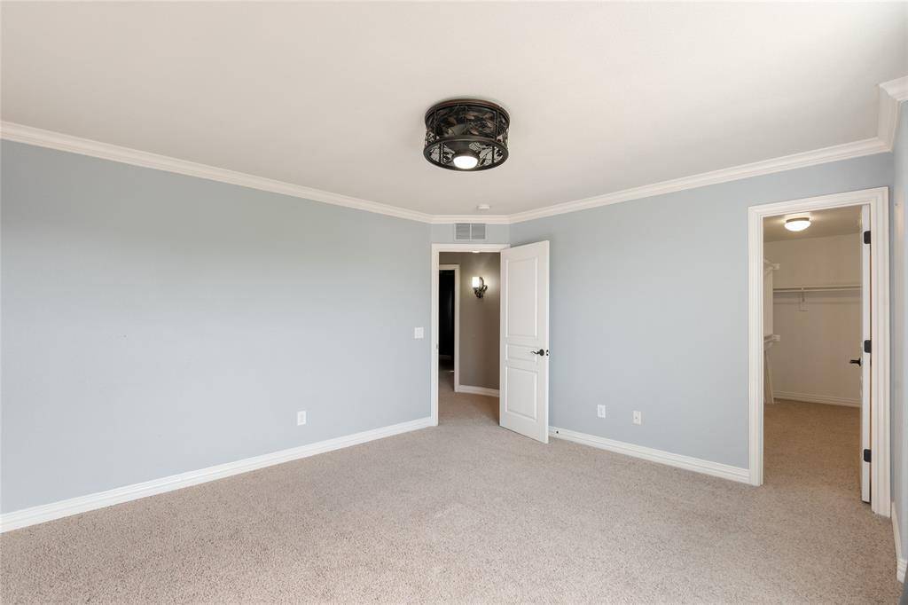 A private study with French doors provides an ideal work-from-home space. Upstairs features a large game room, media room with dry bar, and generously sized secondary bedrooms, each with walk-in closets.