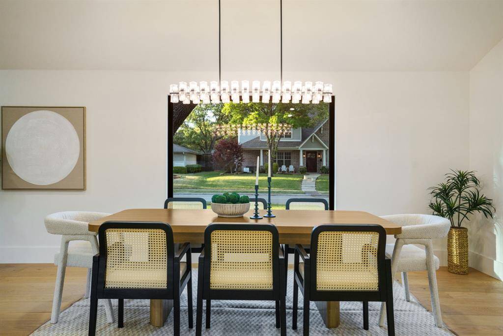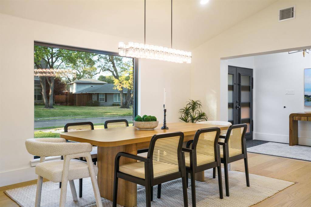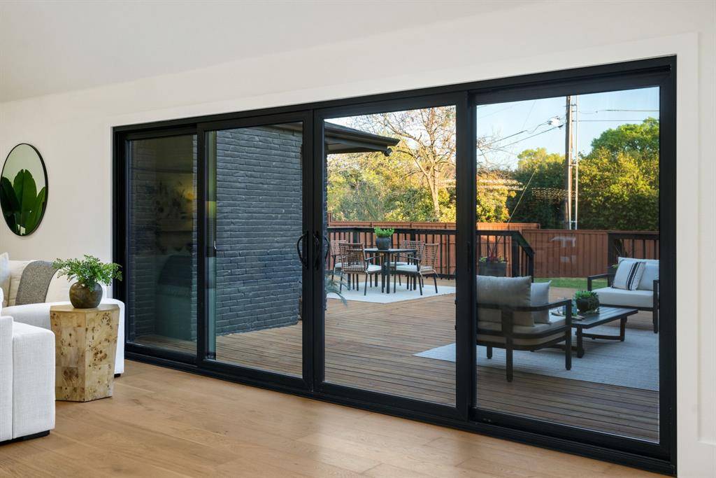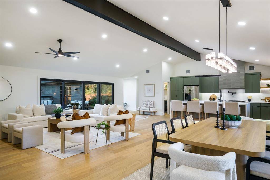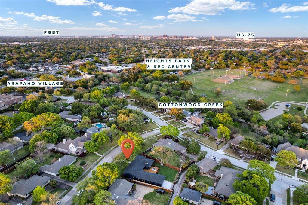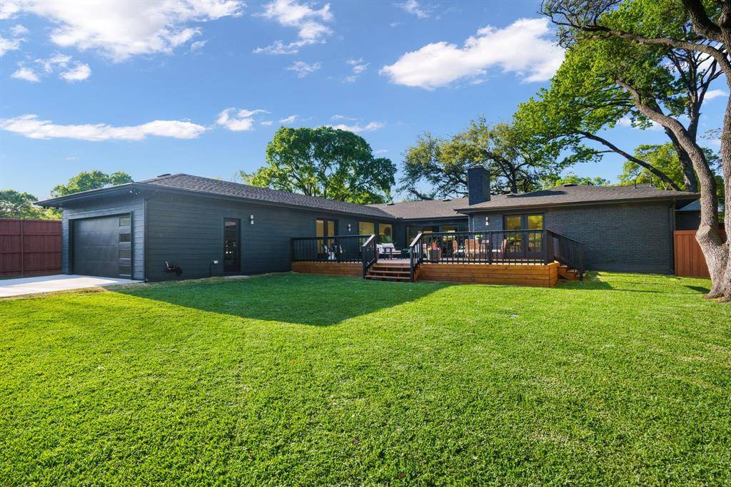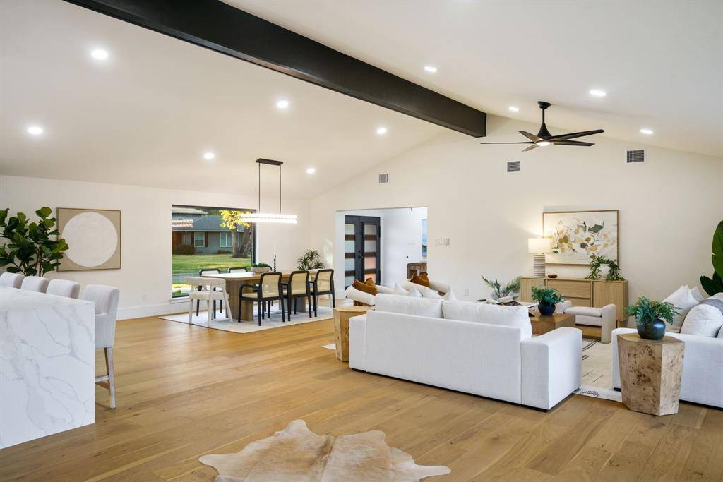 Beautifully expanded and thoughtfully reimagined, this single-story Arapaho Heights home offers over 3,000 square feet of elevated living on a wide interior lot in one of West Richardson's most sought-after pockets, between Heights Park and Waterview Preservation. Completely renovated with an extensive list of structural and system upgrades, the home features all-new plumbing including sewer line, new electrical with buried lines, new roof, windows, HVAC systems, tankless water heaters, and more — delivering both peace of mind and long-term value. Inside, a split floor plan unfolds with vaulted ceilings, including a stunning 1,000-square-foot great room anchored by a 35-foot exposed beam and a 14-foot sliding door that creates seamless indoor-outdoor flow. Engineered hardwoods, custom millwork, and curated lighting elevate every space. The kitchen is designed to impress and perform, featuring a 10-foot island, quartzite surfaces, custom cabinetry, a 48-inch gas range, high-end appliance package including refrigerator, and a butler's pantry with beverage storage and integrated pop-up outlets for a clean, functional workspace. The primary suite offers a true retreat with fireplace, spa-like bath finished in natural stone, and direct access to the expansive outdoor living area. Each secondary bedroom is generously sized, with multiple ensuite configurations and excellent storage. Outdoor living is equally exceptional, with an approximately 900-square-foot deck, new landscaping and irrigation, extended concrete, and a gated driveway with electric entry — all designed to enhance both privacy and everyday livability. Set among a blend of original charm, high-end renovations, and new construction, this Arapaho Heights location is known for its strong values, wide lots, and proximity to parks, and top-rated Richardson ISD schools. A rare opportunity to own a fully renovated, move-in ready home with both design and infrastructure completed at a high level.