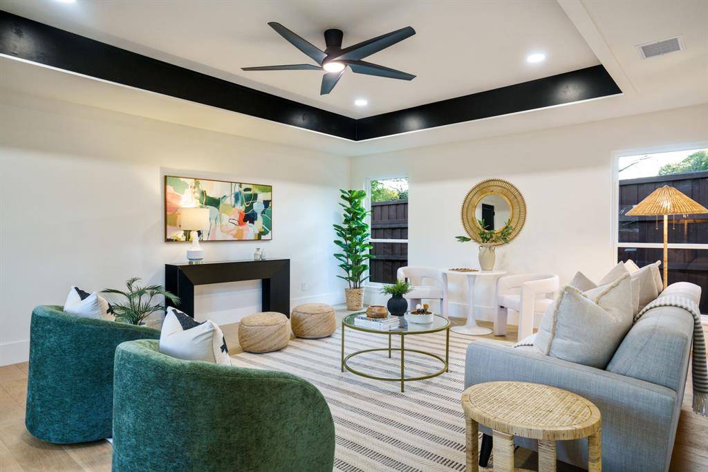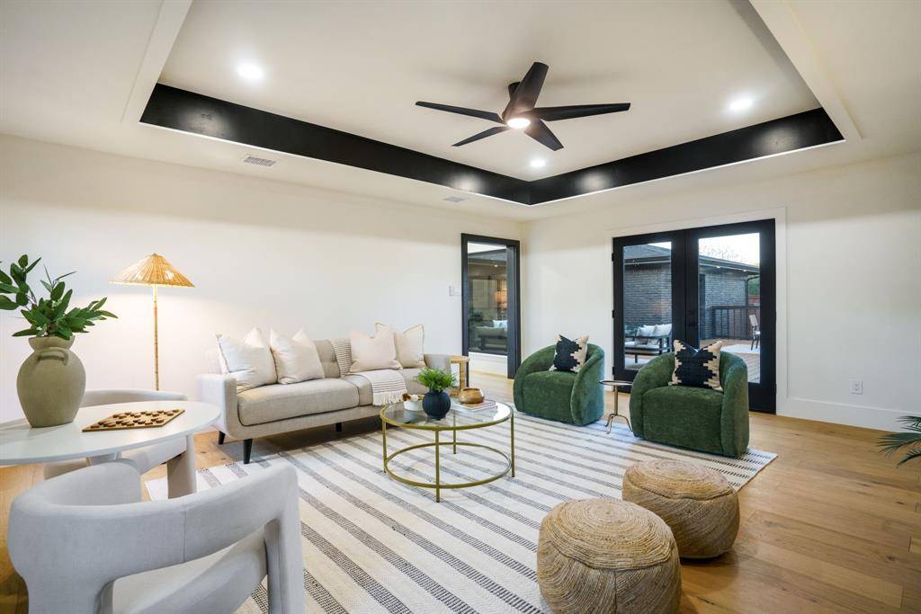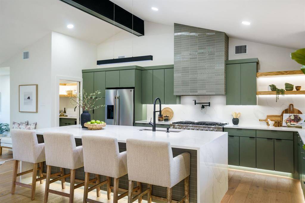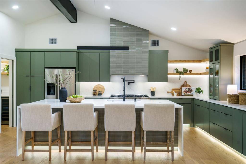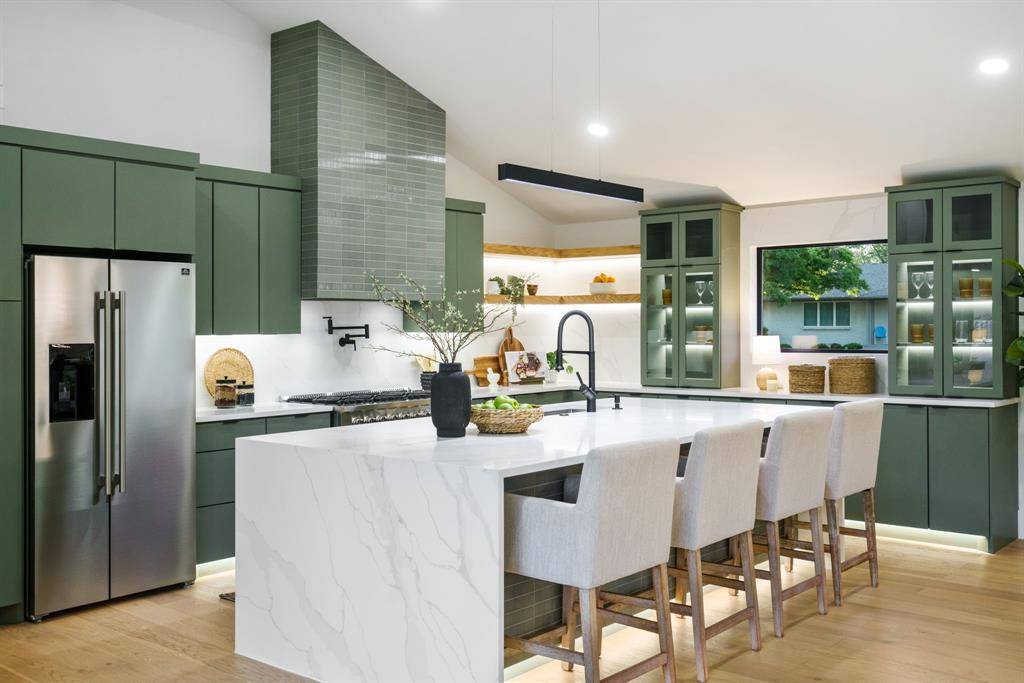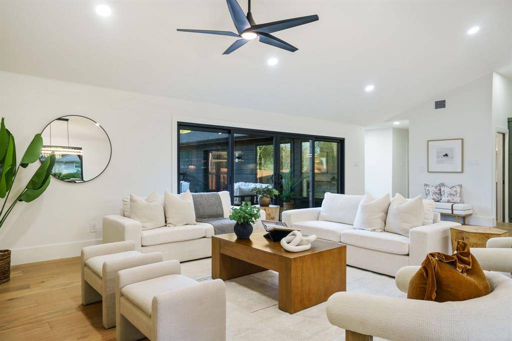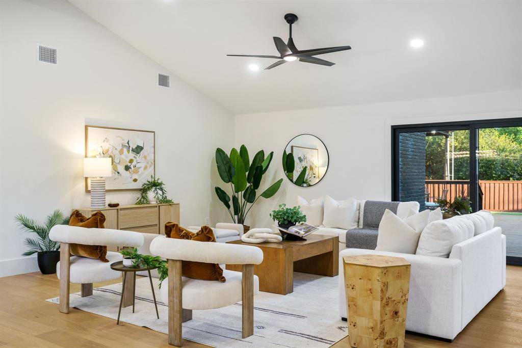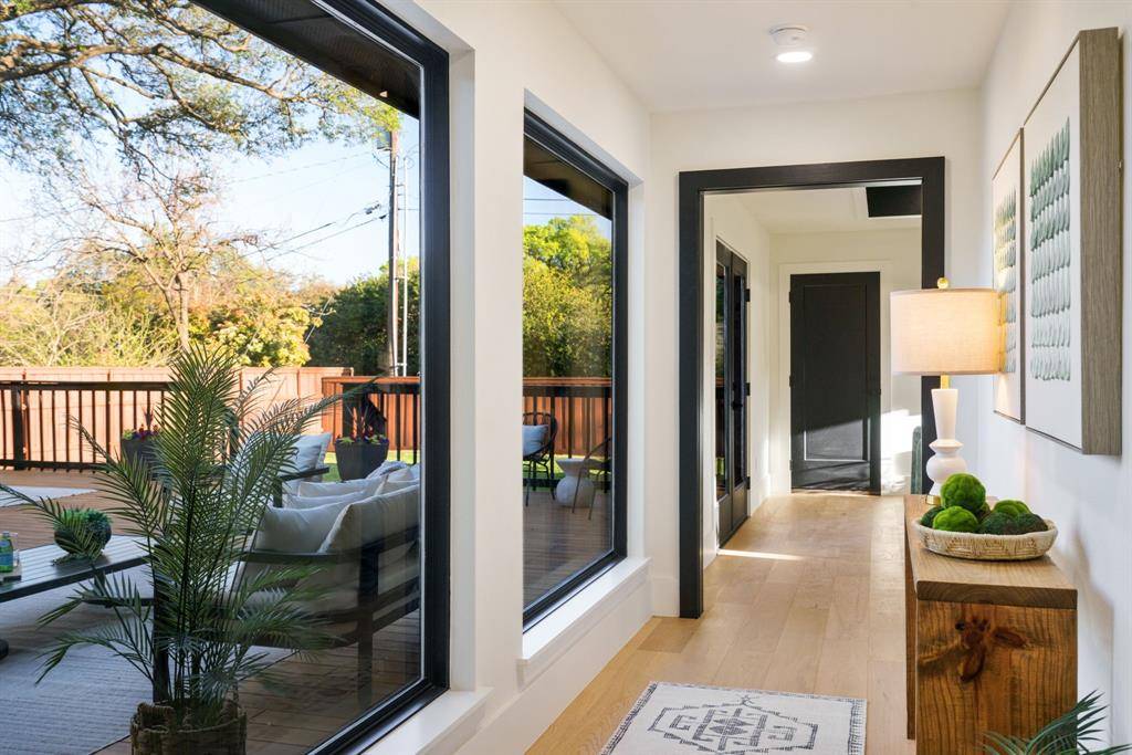 Beautifully expanded and thoughtfully reimagined, this single-story Arapaho Heights home offers over 3,000 square feet of elevated living on a wide interior lot in one of West Richardson's most sought-after pockets, between Heights Park and Waterview Preservation. Completely renovated with an extensive list of structural and system upgrades, the home features all-new plumbing including sewer line, new electrical with buried lines, new roof, windows, HVAC systems, tankless water heaters, and more — delivering both peace of mind and long-term value. Inside, a split floor plan unfolds with vaulted ceilings, including a stunning 1,000-square-foot great room anchored by a 35-foot exposed beam and a 14-foot sliding door that creates seamless indoor-outdoor flow. Engineered hardwoods, custom millwork, and curated lighting elevate every space. The kitchen is designed to impress and perform, featuring a 10-foot island, quartzite surfaces, custom cabinetry, a 48-inch gas range, high-end appliance package including refrigerator, and a butler's pantry with beverage storage and integrated pop-up outlets for a clean, functional workspace. The primary suite offers a true retreat with fireplace, spa-like bath finished in natural stone, and direct access to the expansive outdoor living area. Each secondary bedroom is generously sized, with multiple ensuite configurations and excellent storage. Outdoor living is equally exceptional, with an approximately 900-square-foot deck, new landscaping and irrigation, extended concrete, and a gated driveway with electric entry — all designed to enhance both privacy and everyday livability. Set among a blend of original charm, high-end renovations, and new construction, this Arapaho Heights location is known for its strong values, wide lots, and proximity to parks, and top-rated Richardson ISD schools. A rare opportunity to own a fully renovated, move-in ready home with both design and infrastructure completed at a high level.