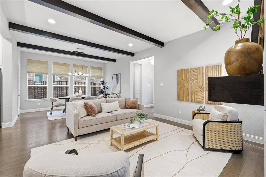 Looking for a home that provides the perfect blend of luxury, convenience, and an active North Texas lifestyle? This home is just steps from Life Time Fitness, scenic walking trails, parks, and the renowned TPC Craig Ranch, host of the PGA Byron Nelson, with dining, shopping, and entertainment nearby at District 121, HUB 121, and Historic Downtown McKinney. Easy access to State Highway 121, plus everyday essentials like Costco Wholesale and Trader Joe's, makes this location as practical as it is vibrant.This Gorgeous 4-bedroom, 3.5-bath home offering an ideal blend of luxury, comfort, and modern design with an open-concept floor plan is filled with designer touches throughout and welcomes you with soaring ceilings that flow seamlessly into the spacious living room, highlighted by an exposed beam, a stunning Carrara marble fireplace, and beautiful hardwood floors.