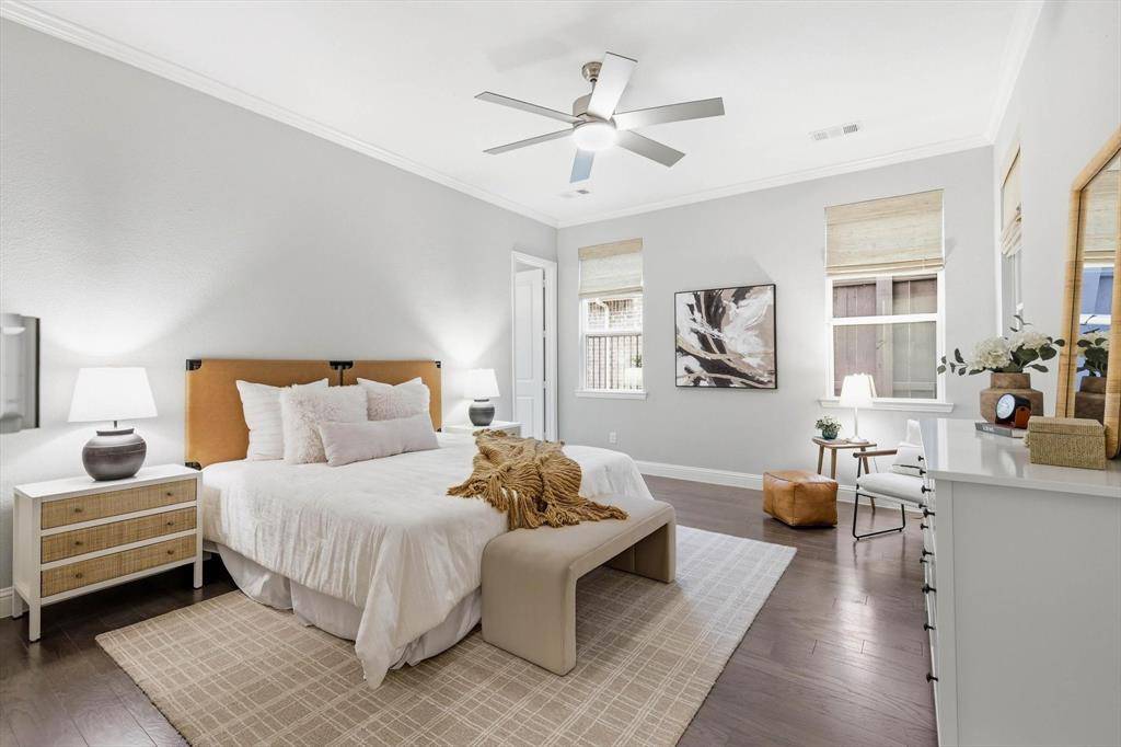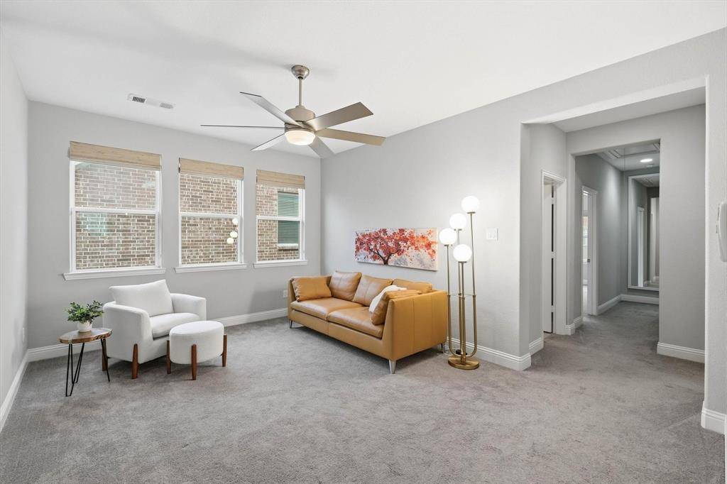 The chef's kitchen is perfect for both everyday living and entertaining, featuring a gas cooktop, stainless steel appliances, and an oversized quartz island that opens effortlessly to the dining area lined with windows for abundant natural light.The private primary suite is a true retreat, complete with a spa-like ensuite bath showcasing Carrara marble floors, dual rain shower heads, a relaxing soaking tub, and an expansive walk-in closet. A dedicated office with French doors provides the perfect space for working from home. Upstairs, you'll find a game room or second living area, along with three generously sized bedrooms—all with large walk-in closets. Two bedrooms share a Jack-and-Jill bath, while the third includes its own ensuite, making it ideal for guests or multigenerational living.Enjoy modern convenience with many smart home features for lighting, thermostat and garage. This home truly offers the perfect combination of luxury living, convenience, and an active, connected lifestyle in one of North Texas' most desirable locations.