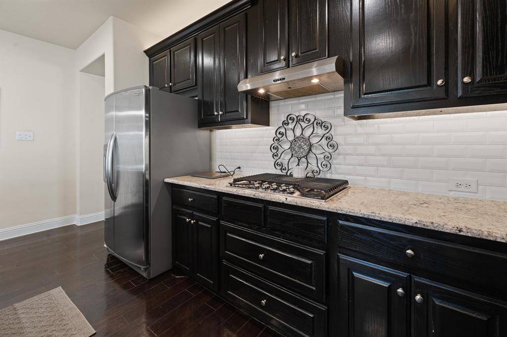 Welcome home to this beautiful 3-bedroom, 2-bath property in the highly sought-after Bluffview Estates, just minutes from downtown Roanoke and located within acclaimed Northwest ISD! This charming home offers the perfect blend of comfort, style, and convenience, with easy access to Roanoke's Oak Street—known as the Unique Dining Capital of Texas—as well as major freeways and nearby amenities. Inside, rich dark hardwood flooring flows seamlessly through the open floor plan, creating a warm and inviting space ideal for both everyday living and entertaining. A versatile flex room offers endless possibilities, whether you need a second dining area, additional living space, game room, or a home office. The kitchen is designed to impress with granite countertops, a gas cooktop, under-cabinet lighting, and ample space to prep and gather, all while opening to the dining and living areas for effortless hosting. The living room overlooks the backyard and features a cozy gas log fireplace. The spacious primary suite provides a relaxing retreat with an en-suite bath featuring a garden tub, dual sinks, separate shower, and a walk-in closet. Step outside to your own private oasis, where the backyard backs to a tranquil greenbelt, offering peaceful views and the chance to enjoy local wildlife right from your own space. Unwind or entertain under the gazebo with wood decking—perfect for quiet evenings or weekend gatherings. The community is a true gem, featuring scenic walking trails, a family-friendly splash pad, and a welcoming atmosphere for all ages. This home not only delivers a beautifully updated living space but also a lifestyle of comfort and relaxation in a prime location. Don't miss your opportunity to call this one home!