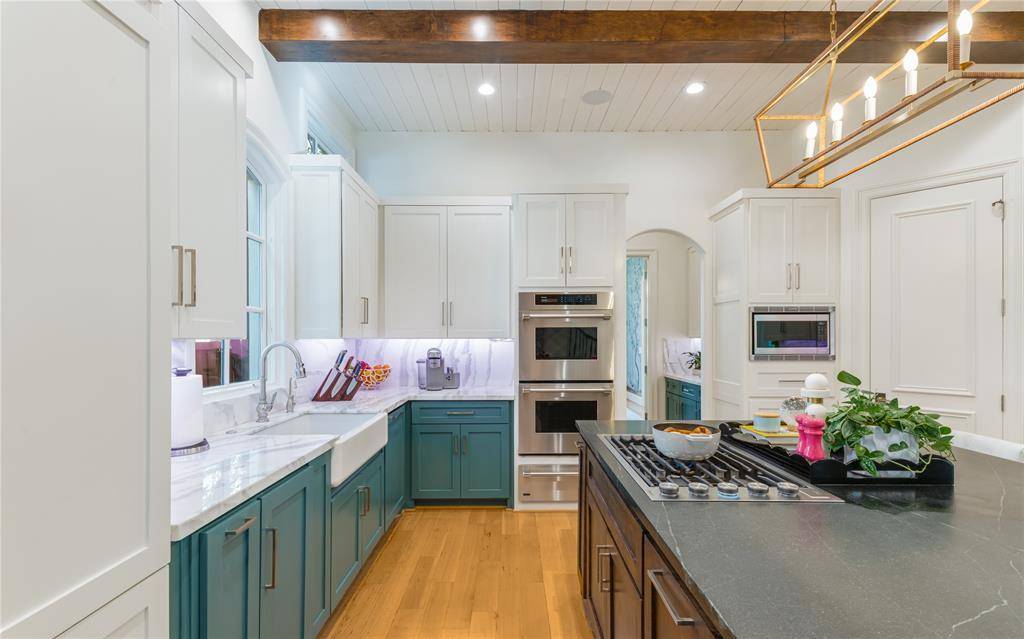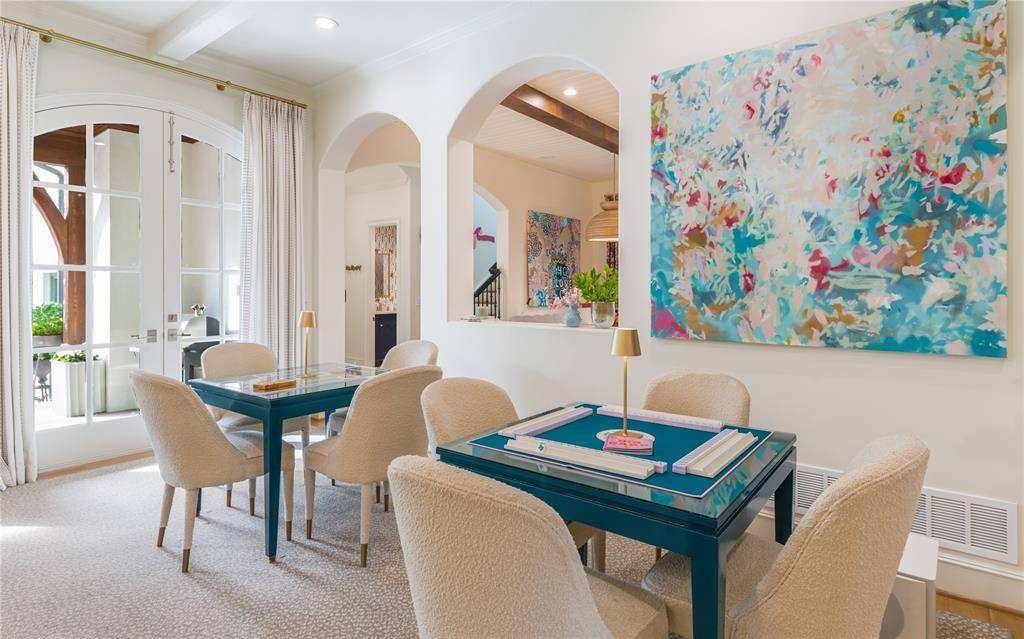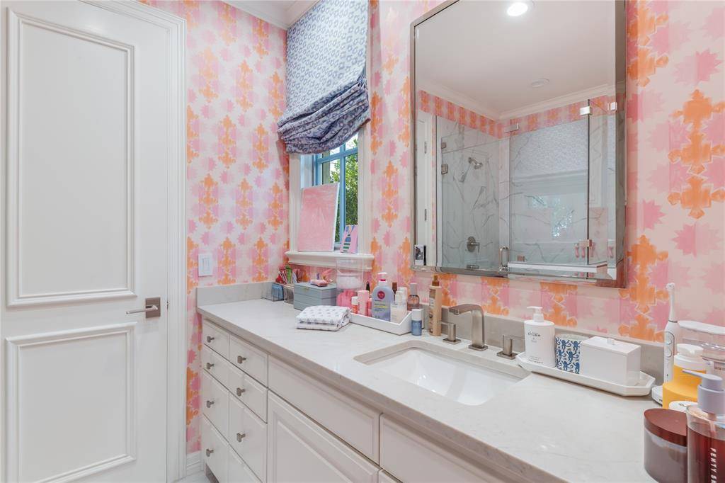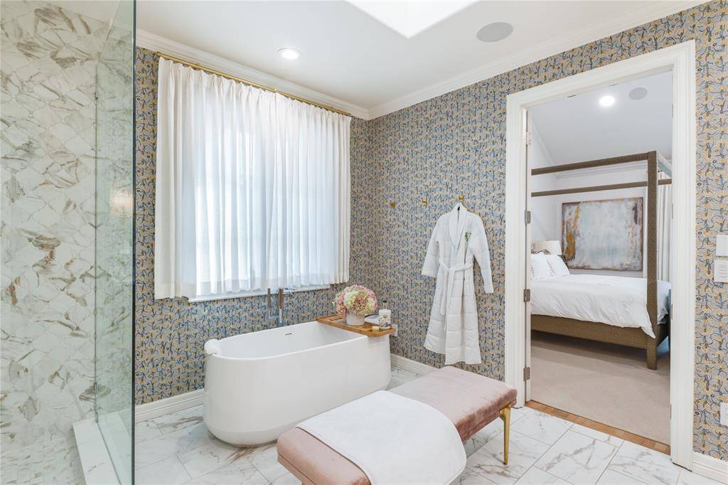 Located in the heart of University Park, this exceptional 6,327-square-foot residence is a true designer's dream—originally built by renowned luxury builder Todd James, with interiors by Fort Design Studio, and thoughtfully elevated through over $1M in renovations completed in 2023. Showcasing impeccable, high-end designer finishes throughout, every space has been curated with intention and sophistication. Situated on a rare 70x160 lot, the home offers 5 bedrooms, 5.2 baths, including four spacious ensuite bedrooms on the second level, and a private third-floor guest retreat or fifth bedroom with added square footage and a full bath. Designed for both everyday living and elevated entertaining, the home features all primary living spaces on the first floor, complemented by a seamless and highly functional floor plan. Highlights include two private offices, dual staircases, a full-size home gym, Savant smart home automation, a chef's kitchen with banquet seating, wine cellar and bar, and multiple light-filled living areas. The luxurious primary suite offers a private sitting room and separate closets, creating a true retreat within the home. Recent improvements include a new roof, HVAC systems, water heaters, gutter system, sprinkler system, refurbished and painted stucco exterior, and the addition of a circular drive and electric vehicle charging station. Electric shades are installed throughout the home, along with Phantom Screens enhancing the covered patio experience. Outdoor living is equally impressive, featuring a resort-style pool and temperature-controlled spa, beautifully refreshed mature landscaping, and thoughtfully designed spaces that maximize seamless indoor–outdoor entertaining on this oversized lot.