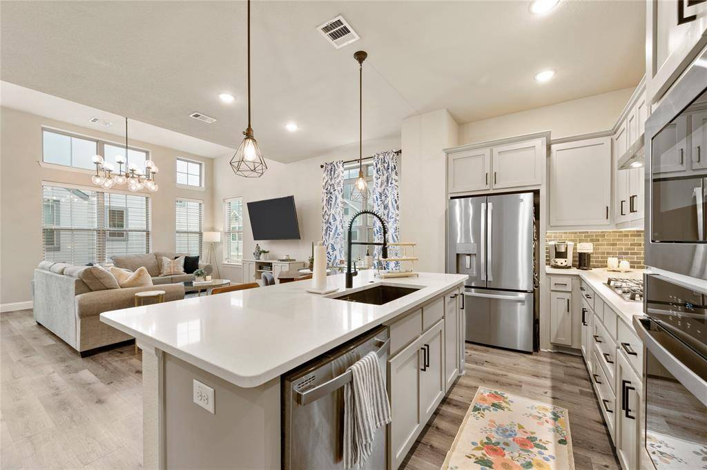 Luxury Meets Convenience in this Turnkey David Weekley 3-Story Corner Home! Ideally located just minutes from Downtown Dallas, Bishop Arts, and Victory Park, with easy access to major highways including I-30, I-35, I-45, US-75, and the Dallas North Tollway. This beautifully maintained home offers 3 bedrooms, 3 bathrooms, and an open-concept layout filled with abundant natural light. The chef's kitchen features a stainless steel gas cooktop, granite countertops, and LED-lit cabinetry, perfect for both everyday living and entertaining. The third-floor primary suite is a true retreat, complete with a sitting area, oversized garden tub, separate shower, and a spacious walk-in closet. All bedrooms include their own bath, providing added comfort and privacy. Enjoy outdoor living on the private covered rooftop terrace, along with the convenience of a 2-car rear-entry garage. Recent upgrades include low maintenance turf, while the HOA covers yard maintenance and offers access to a community pool. Additional highlights include energy-efficient construction, smart home features, and a transferable 10 year structural warranty through 2030. Great for professionals, entertainers, or anyone seeking a low-maintenance lifestyle in a prime Dallas location. HOA dues paid through 2027.