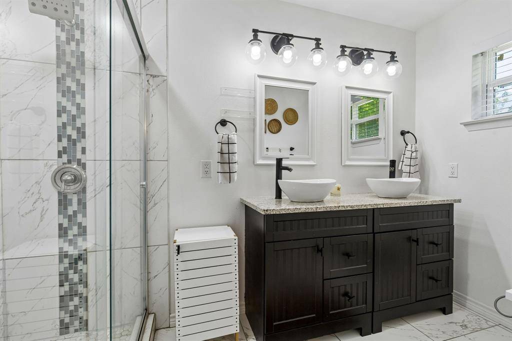 Welcome to 13936 Charcoal Lane, a thoughtfully updated home nestled in the heart of Farmers Branch, just moments from the highly sought-after Brookhaven Golf Course. This charming 3-bedroom, 2-bath residence blends timeless character with modern updates, creating a warm and inviting space that feels like home from the moment you arrive. Inside, you'll find a light-filled, open-concept layout designed for both everyday living and effortless entertaining. The spacious living area features a striking fireplace with custom built-ins and flows seamlessly into the beautifully updated kitchen, complete with white cabinetry, granite countertops, stainless steel appliances, and a central island perfect for gathering. The primary suite offers a peaceful retreat with an en-suite bath, while two additional bedrooms provide flexibility for guests, a home office, or growing needs. Step outside to a private backyard oasis featuring a covered deck with a pergola, ideal for relaxing evenings or hosting friends. The fire pit area adds the perfect touch for year-round enjoyment. With a two-car garage and a prime location near parks, dining, and golf, this home offers both comfort and convenience in one of Farmers Branch's most desirable pockets.